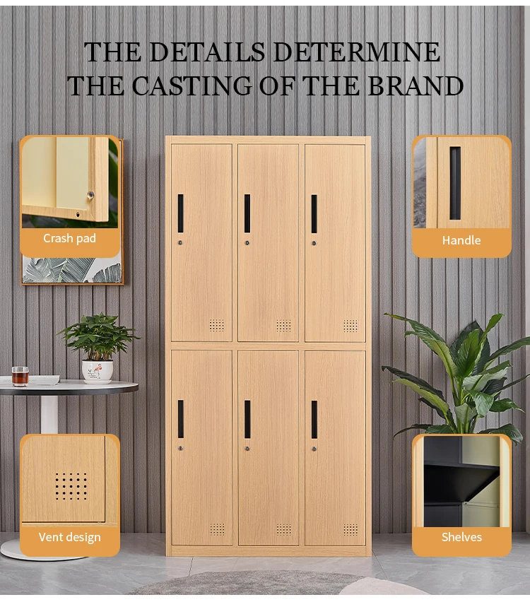 Factory Price Bedroom Wall Wardrobe Design Multi-use Portable Clothe 6 Door painted modern cheap metal mirrored wardrobe