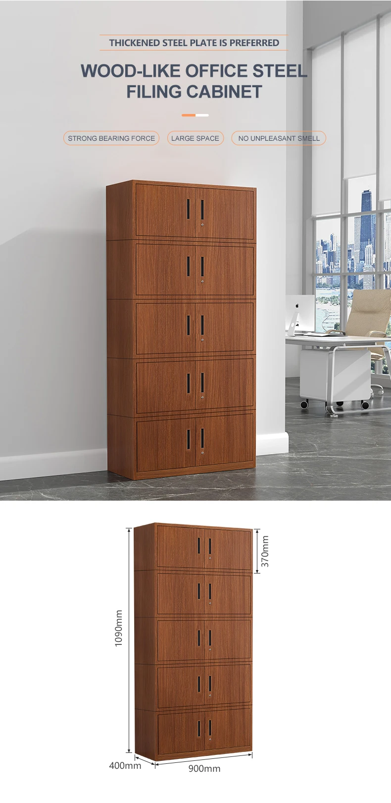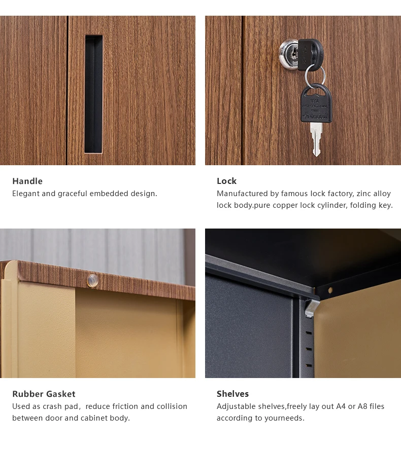 Wood like color Metal cabinet storage 2 door file cabinet with swing door steel filing cabinet office furniture office cupboard