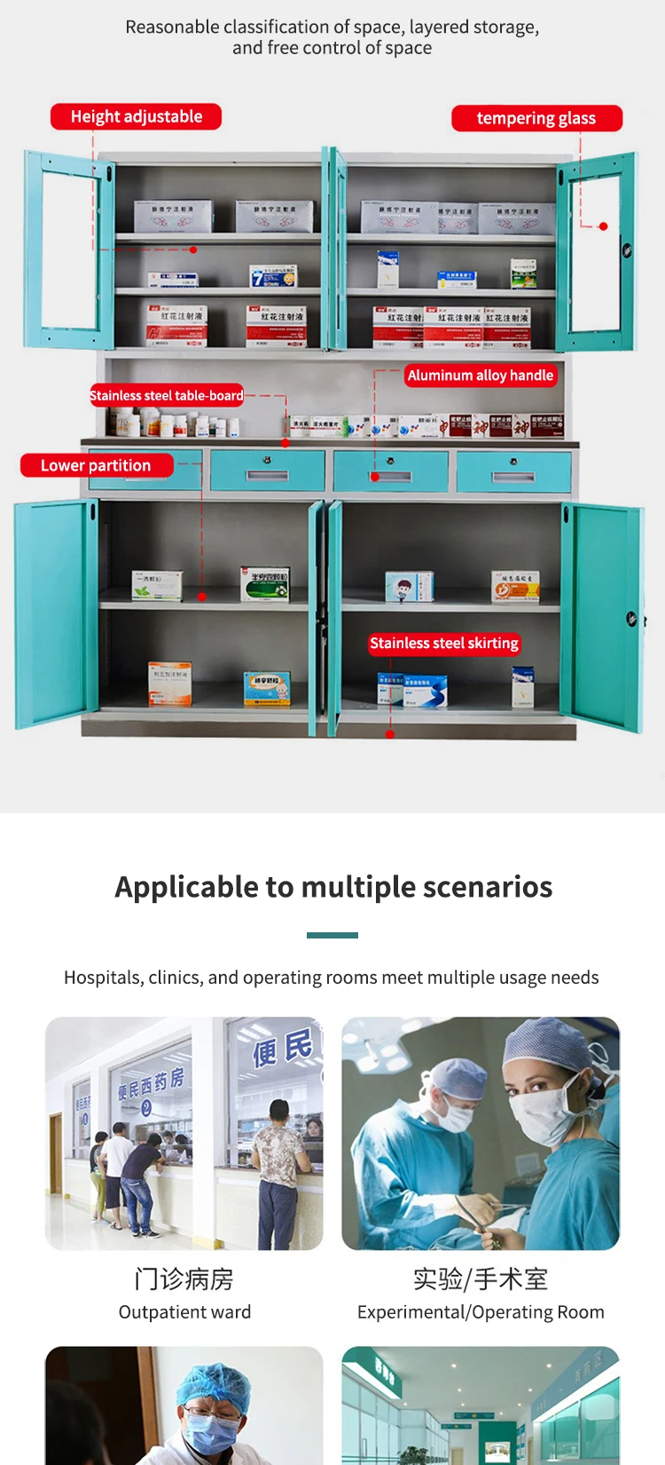 You are here: Home » Products » Medical Filling Cabinet » Large storage space 1500mm large medical room medicine cabinet