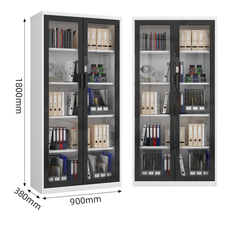 Manufactory 1800*900*400 Glass Door Metal Shelf Steel Storage Book Shelf