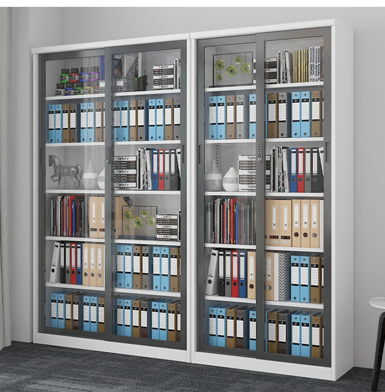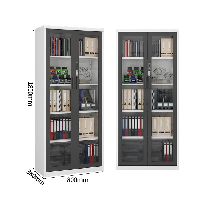 Shankin Manufactory 1800*800*400 Glass Door Metal Shelf Steel Storage Book cabinet
